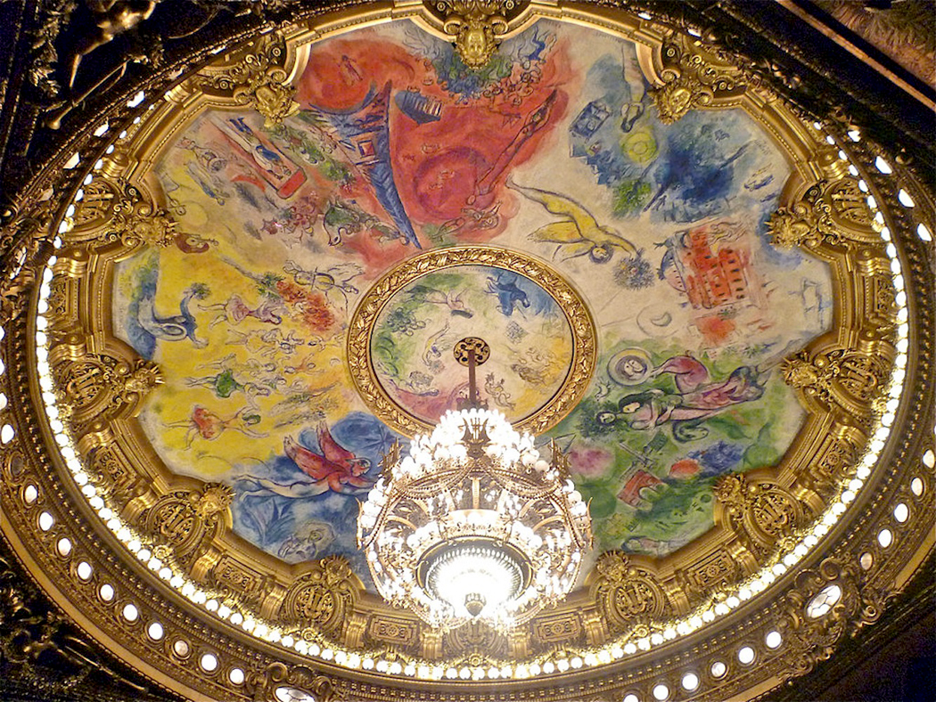 and the ceiling of the Palais Garnier in Paris. But the general run of Chagall has always struck me not as childlike, but childish. And he produced way too much with too little editing, leaving dozens and dozens of images virtually identical except for their finish — a blue coat here, turned red coat there, or left as a scribble. This was especially true of the biblical images, of which there seemed to be hundreds.