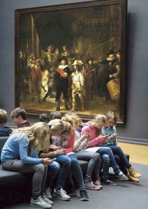 (Judging from this photo, it’s possible even to visit the Rijksmuseum in Amsterdam and still not see Rembrandt’s Nightwatch. How many times have you seen museum visitors staring at the blue light of their cellphone instead of at the work on the walls?)