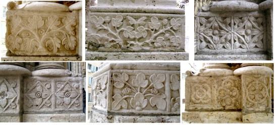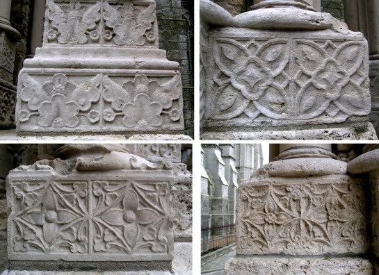 You can see this tendency not only in the columns (often called pillars when discussing Gothic cathedrals) and capitals, but in the column bases. Just in the north porch alone, I photographed a series of them. Here are six.