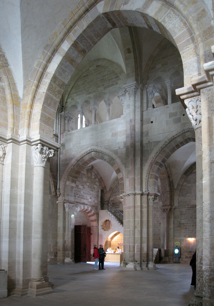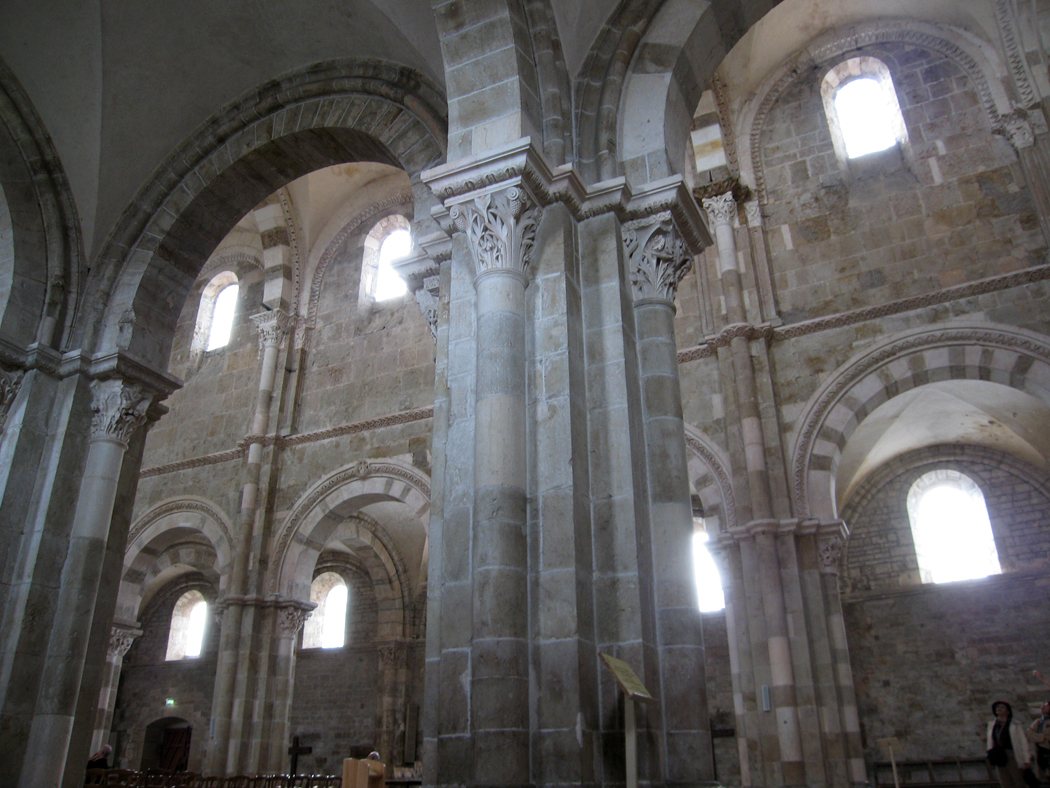 St. Denis is oddly out of line: You may not notice it on first sight, but soon, you realize that the apse is not in line with the nave, and in fact, the nave itself has a kink in it. I don’t know if this was a mistake in execution, or because it happened over time, or did the master builder need to make slight adjustments based on bedrock or water table, or did they start from both ends and not quite meet up in the middle? No matter which, it helps give St. Denis an oddly organic feel, and gives it something of a Piranesi “carceri” kind of architectural idiosyncrasy.