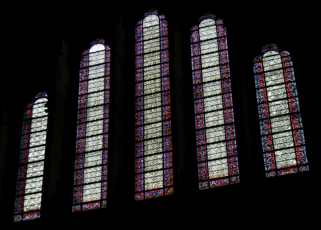 It is true that not much is left to be seen of Suger’s original design, but his intent is obvious: Outside of Sainte-Chapelle, no Gothic church we have visited is more brilliantly lit and colored by the streaming sunlight filtered through the stained glass, more fully committed to the principle that divinity is light, and the temple of the divine should glow and inspire.