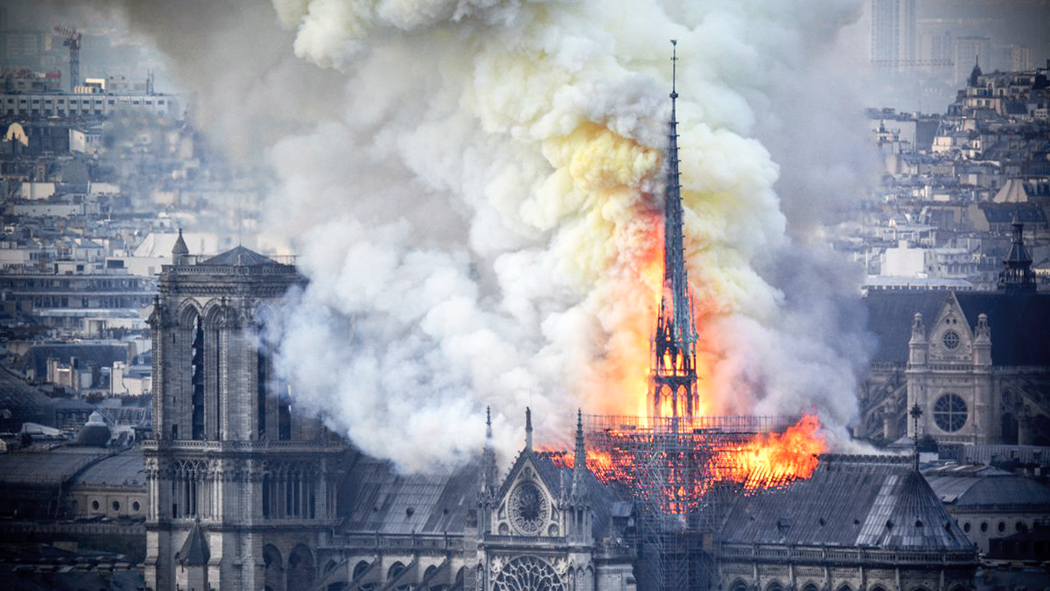 This could almost describe the fall of the spire on Notre Dame de Paris this week.