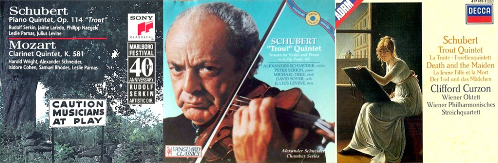 It was written in 1819, when Schubert was 22 years old, and before the lingering illness that eventually killed him nine years later. The haunting of death darkens the later String Quintet that he completed in 1828, just two months before his death. But the “Trout” is the antithesis of all that: Life giving, life affirming, joyful from first bar to last. What can you do when every tune is an ear-worm. Once inside your body, you carry the “Trout” with you the rest of your life. Play it every time you need it.