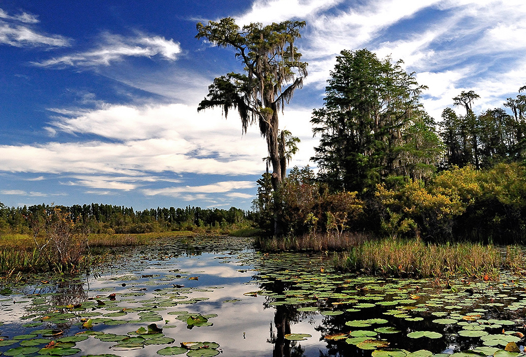 The Okefenokee is my favorite swamp. That’s saying a lot. I’ve seen more wildlife in it than in any other. Drive up Georgia 177 from Edith into the Stephen C. Foster State Park and rent a canoe. Paddle within inches of swimming alligators. Look into the trees for the snake birds — anhingas — with their darting necks and their wings spread out in the sun to dry.