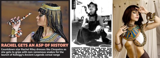 Of course, you will have noticed that in none of the ancient stories of her death does Cleopatra apply the serpent to her firm but supple breast. That version comes later, especially as painters attempted to give us the version not so much of Plutarch as of Joseph L. Mankiewicz. There is a Cecil B. DeMille quality to most of the historical paintings of Cleopatra, who ranks second only to Eve as a ripe subject for images of naked women with snakes.
