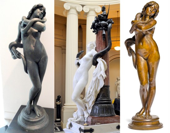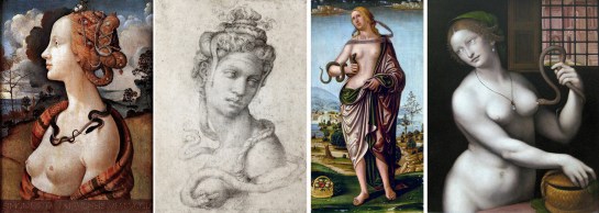 And there is the story of Harmonia and Cadmus. Cadmus, king of Illyria, had killed a serpent and the gods then turned Cadmus into a snake. His wife, Harmonia, stripped herself naked and begged Cadmus to come to her. As she embraced the snake the gods turned her also into a snake.