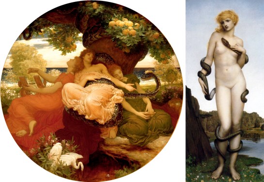 Lord Leighton, the English painter, gave us a grand tondo of the Hesperides, the home of the golden apples Hercules was to gather, which was protected by a serpent.