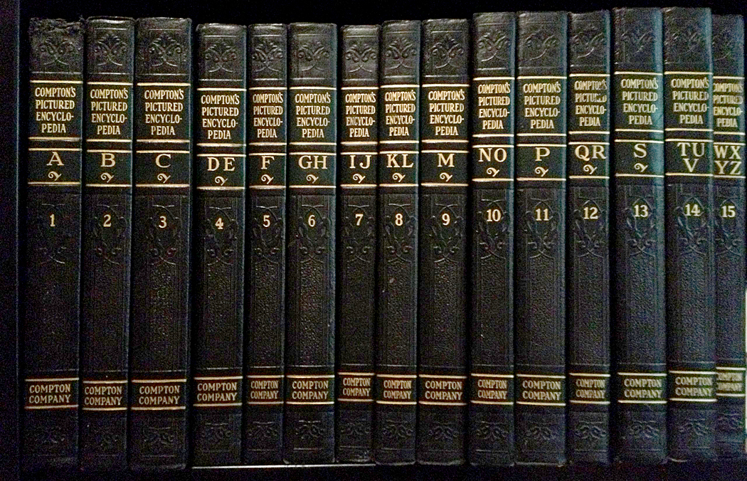 My neighbors had an old Compton’s Picture Encyclopedia, from the 1930s, which they gave us, and I read it over and over, with its streamlined steam trains, autogyros and biplanes. But even as a kid, I knew the books were out of date. A wonderful long entry on “The Great War,” but, although I was reading it in 1953 or so, less than 10 years after WWII, there was no mention of any of it.