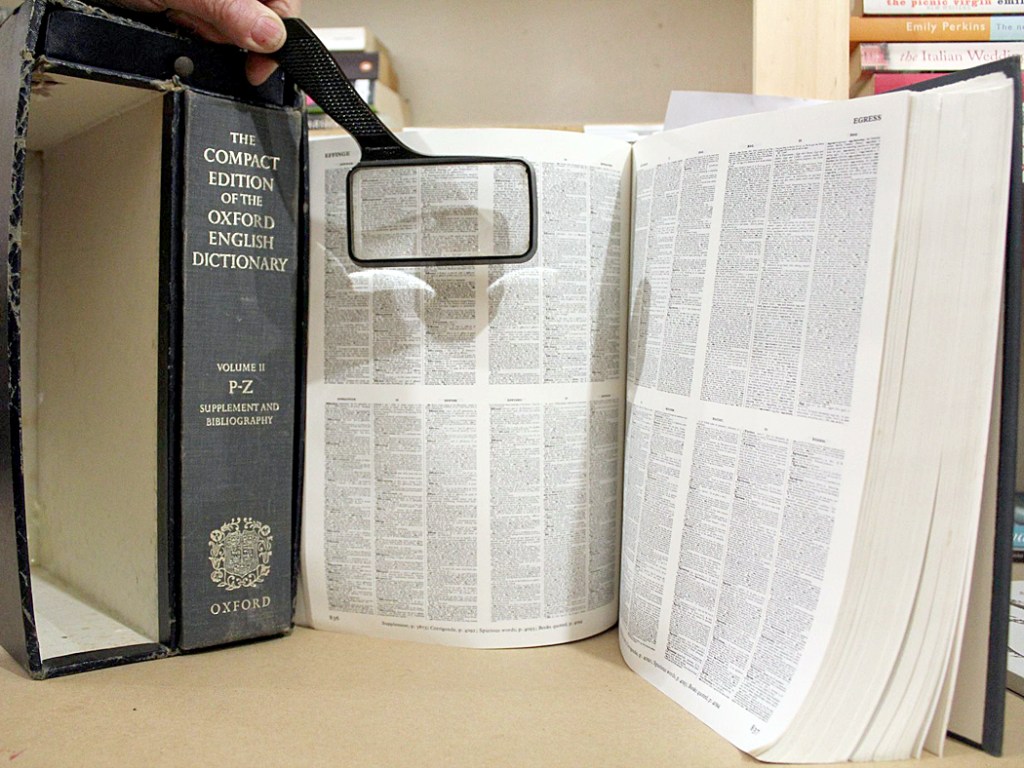 Years later, after college, the OED was published in a two-volume compact form, with microscopic print and a magnifying glass to read it, and I managed to get a copy through signing up for a book-of-the-month club. I still have it, and I still browse through it to find random words, their histories and the curious way language changes over the years.