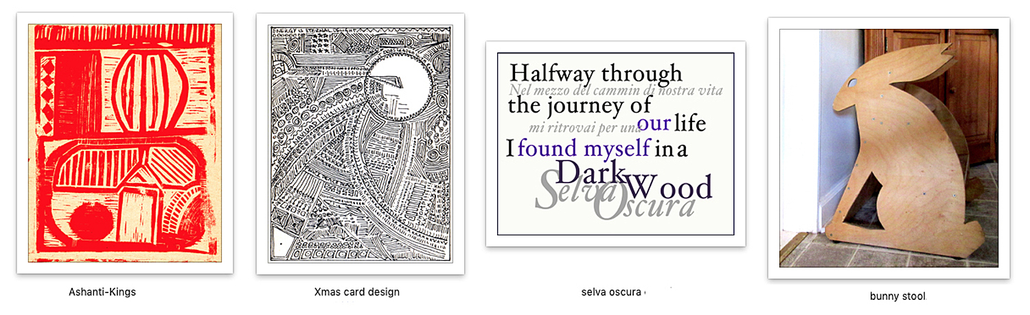 I’ve made linocuts, drawn with pen and ink, played with graphic design, and even, when my wife needed a step-stool for the kitchen, I built one from birch wood in the shape of a jack rabbit.