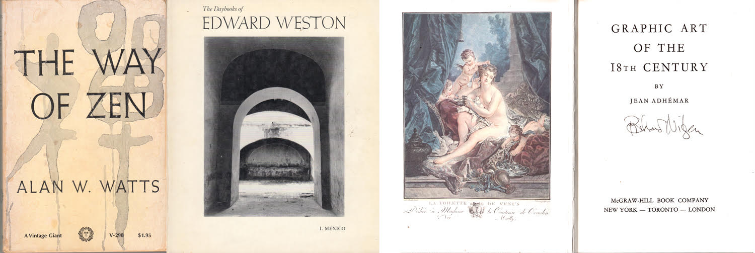 Books that have turned the twig to incline the tree stay with me, such as Alan Watts’ The Way of Zen, or the Daybooks of photographer Edward Weston, or The Graphic Art of the 18th Century, by Jean Adhémar.