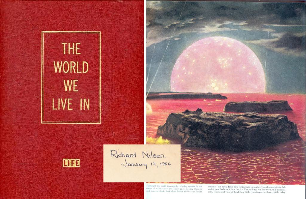 The second oldest book is one my grandmother gave me on my eighth birthday, a giant-format Life magazine book called The World We Live In. It was a counterbalance to the Holy Writ, in that it was a natural history of the world and gave me science. At that age, I was nuts about dinosaurs (as many young boys are in the third grade), and The World We Live In had lots of pictures of my Jurassic and Cretaceous favorites. It also explored the depths of the oceans, the mechanisms of the weather, the animals of the forest, the planets of the solar system, and a countering version of the creation of the world, full of volcanoes and bombarding meteorites. I loved that book. I still love it. It is on the shelf as a holy-of-holies (and yes, I get the irony).