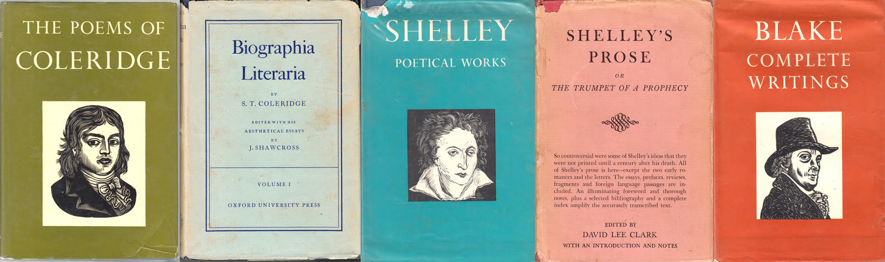 I have books left over from college, such as my Chaucer and my Shelley, my Coleridge and my Blake.