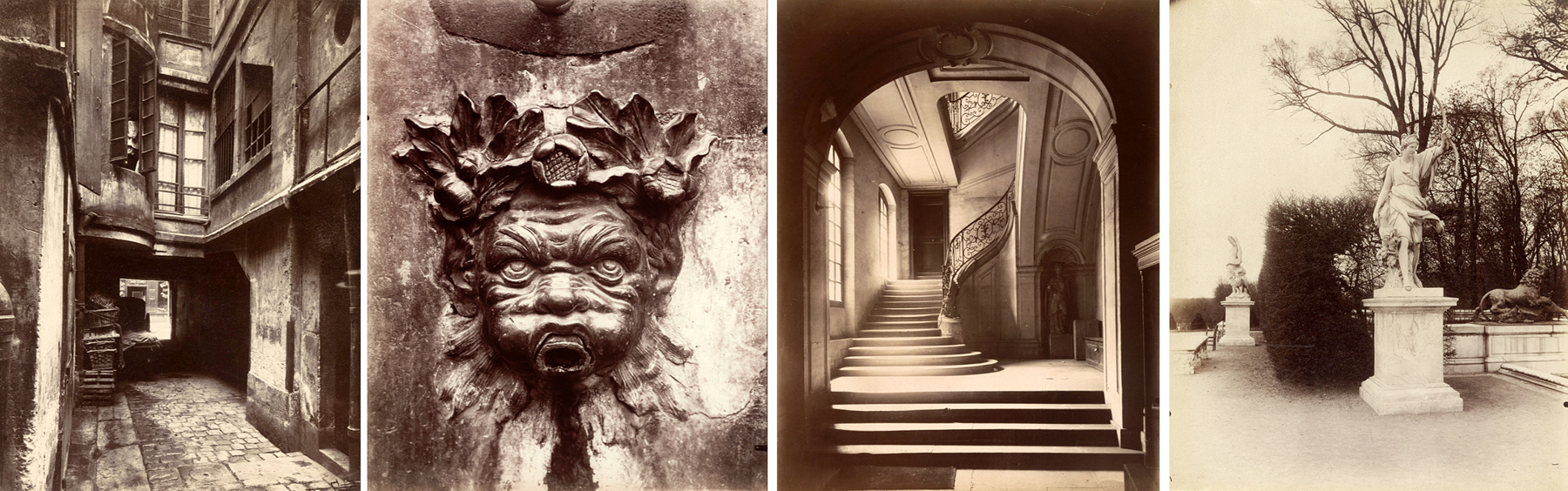 The majority of Atget’s subjects were buildings, statues, door knockers, gardens and street scenes. No detail was too humble for his attention. There are photographs of doors, photos of stairways, photos of balconies and railings, of fireplaces, of courtyards and alleyways. His curiosity was omnivorous and ravenous.
