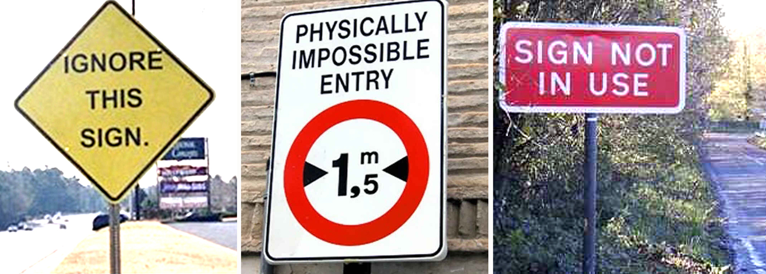 Some signs are self-referential. Without the sign, you wouldn’t need the sign to tell you what’s on the sign.