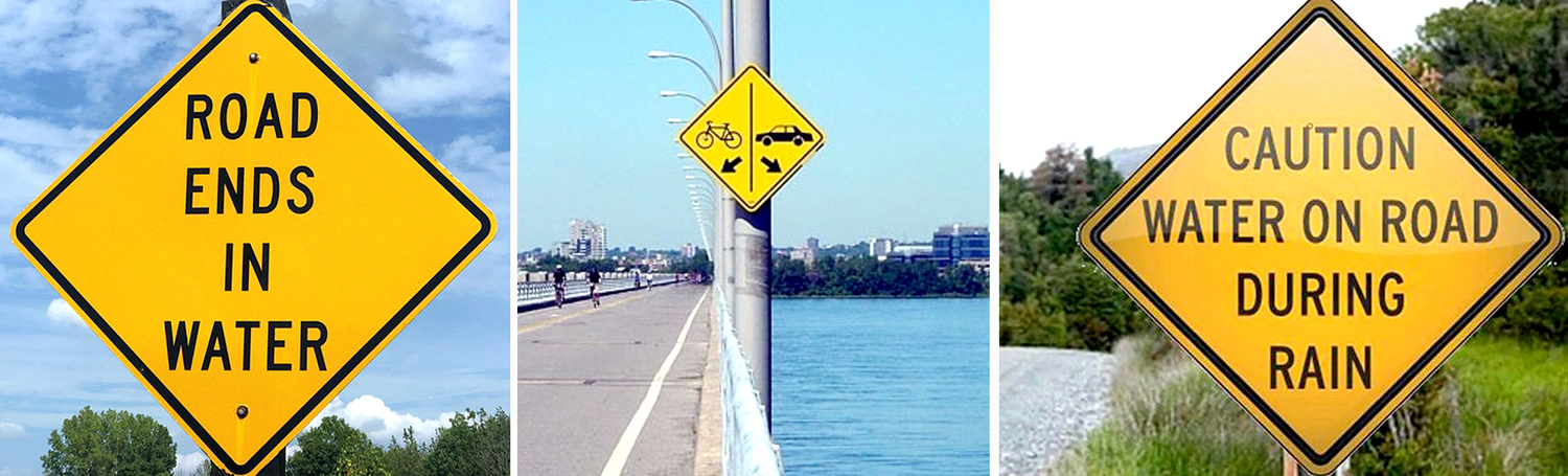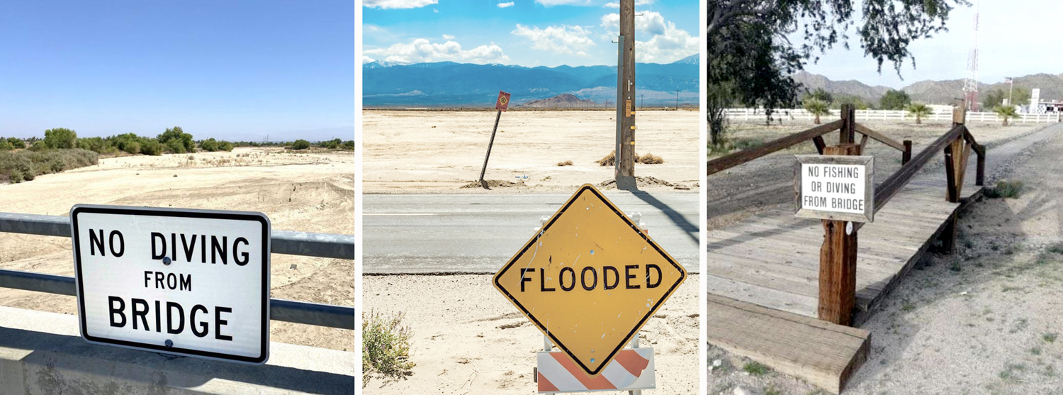 In Wolf Point, Mont., we crossed a tiny bridge over a stony dry wash with a sign posted saying, “No diving off bridge.” This is a common sign across the West.