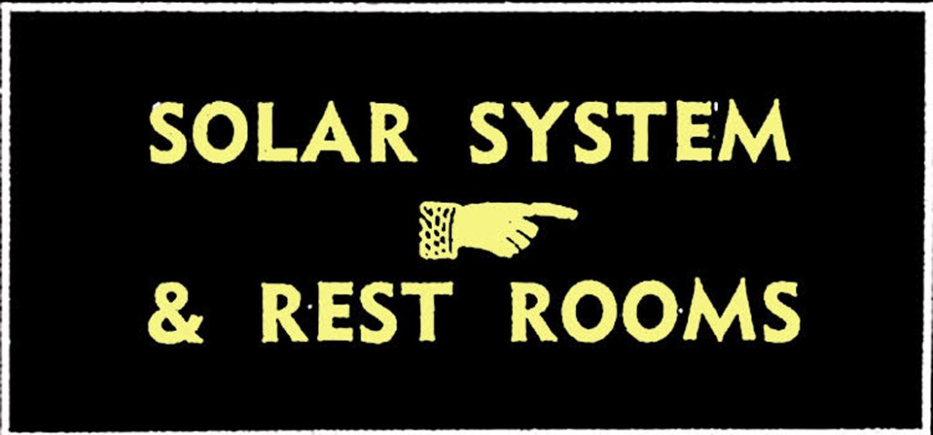 Perhaps my interest in oddness and irony was first touched off when I was a teenager visiting the Hayden Planetarium in New York City, where there was an illuminated sign pointing downstairs to “Solar System & Rest Rooms.”