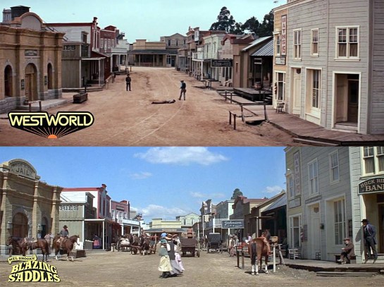 Gunsmoke, first on radio and then on TV for 20 years was intended as an “adult” Western, with more grown-up plots and themes than the standard cowboy movie. And in the early years, largely succeeds, with some quite grim stories about the difficulties of life on the prairie. But even given that, the series relies on many of the Western movie tropes, including its sense of how a Western town is built and functions: one main street lined with storefronts and saloons.