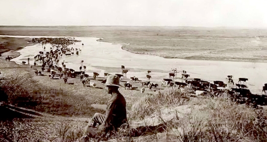 From 1875 to 1886, some 5 million beeves were herded up the trail from Texas to Kansas railheads. In 1877 alone, Dodge City was the largest of the cattle-shipping boom towns, loading up and shipping out 500,000 head of cattle.