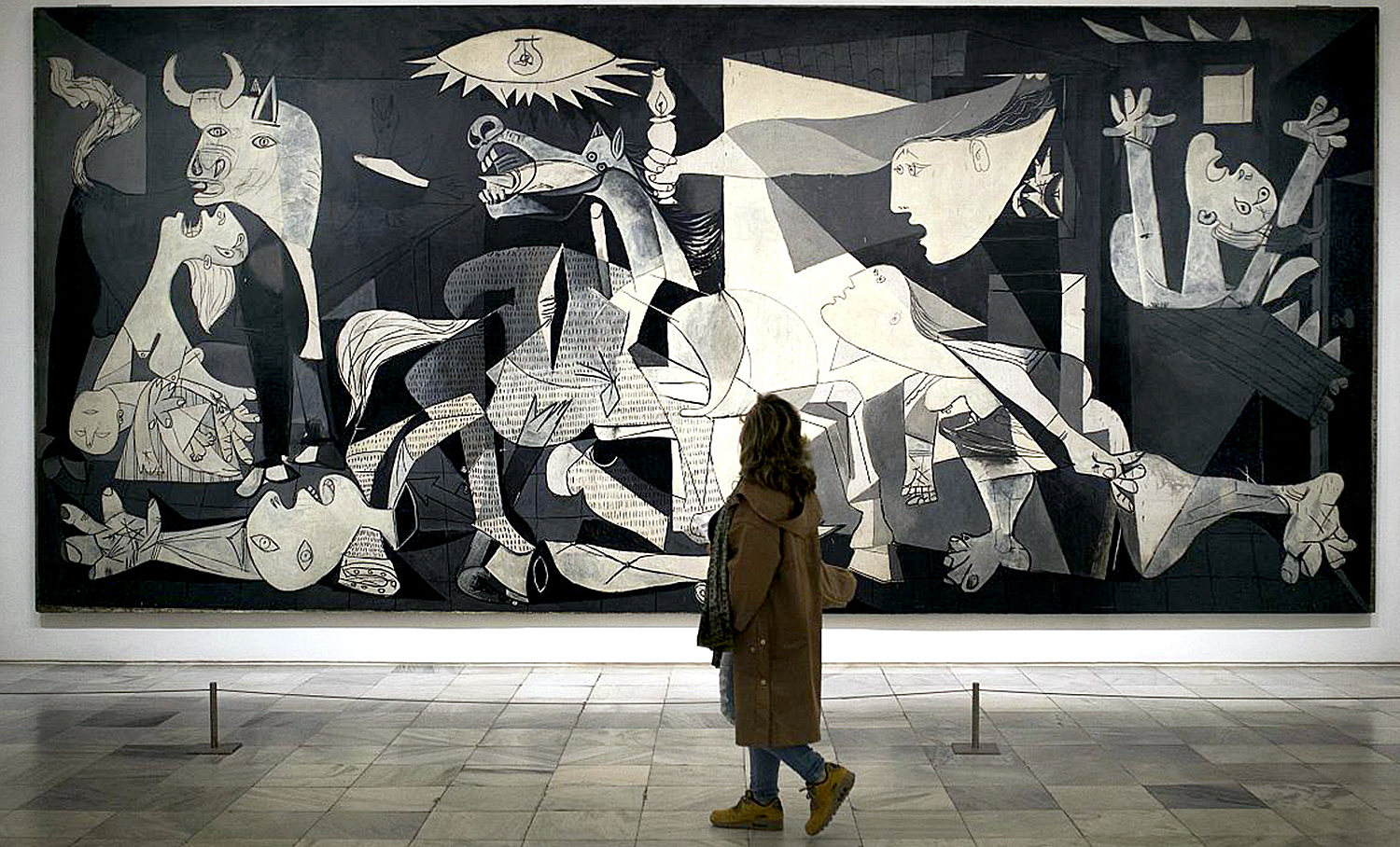 (See how the fallen soldier in Jacques-Louis David’s Intervention of the Sabine Women echoes in Picasso’s Guernica. One way of looking at all cultural history is as an extended conversation between the present and the past. The reverberations are loud and clear.)
