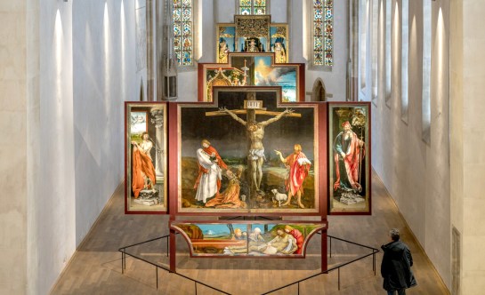 Grünewald, Isenheim Altarpiece — The giant altarpiece comprises 10 paintings by Matthias Grünewald, including the pathos-laden crucifixion as its centerpiece, and a group of polychrome wood sculptures by Nikolaus Hagenauer, executed between 1512 and 1516. It sits in the Unterlinden Museum in Colmar, Alsace, France. The altarpiece was designed to be either closed or open, with various panels showing at different times in the Catholic calendar. I have no stake in the religious significance, I cannot help but be overwhelmed by the pathos and power of the work.