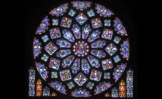 North Rose Window, Chartres Cathedral — I have been back to Chartres many times, and each visit, I spend a half hour, at least, sitting in the transept staring at the North Rose Window. It is, as I have said many times, the single most beautiful man-made creation I have ever seen. It is transcendent, a glowing object of meditation, whose shapes seem to move, to dance around the centerpoint. I am awe blasted. It almost makes up of all the misery, suffering and death human beings cause to each other.