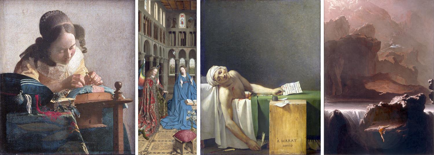 Seek out the unusual, like Jan Provost’s Sacred Allegory, from about 1490, which I like to call “God’s Bowling Ball;” or The Ascension, by Hans Memling, from the same time, which shows Christ rising into heaven, but shows only his feet dangling from the clouds. There’s some quirky stuff on the walls of the Louvre.
